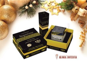 Per meravigliare la vostra mamma o un’amica speciale, regalatele l’eccellenza dei nostri prodotti antirughe: la nostra linea viso antirughe Supreme, composta da Crema Viso e Siero Viso a base di Bava di Lumaca, Veleno d’Ape, Acido Ialuronico e Cellule Staminali di Vite ad azione anti-rughe, anti-macchia e rigenerante. La crema contiene anche olio di Argan, di Rosa Mosqueta, Resveratrolo, Coenzima Q10 e altri pregiati ingredienti ad azione rigenerante, rimpolpante ed antiossidante.