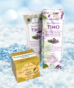 Noi di Alma Briosa abbiamo fatto tesoro di questi saperi tradizionali, scegliendo questi ingredienti per formulare due prodotti balsamici perfetti per affrontare la stagione fredda: FitoPomata al Timo e Unguento alla Propoli Balsamica.