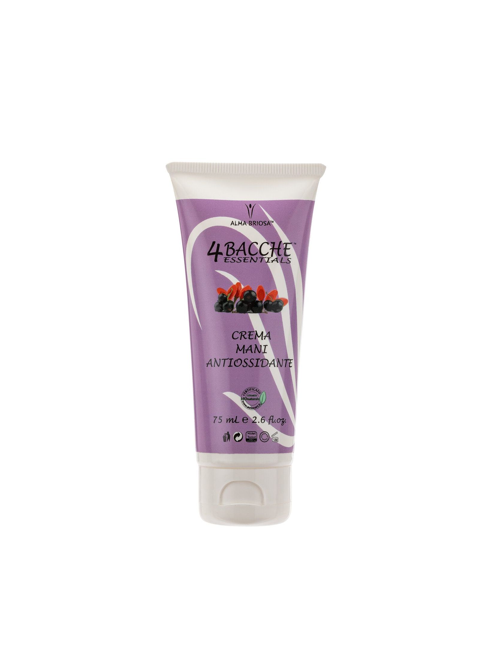 Idratante e nutriente crema mani, indicata come riparatrice e rigenerante cutaneo in caso di piccoli tagli e screpolature, grazie all’alto contenuto di sostanze antiossidanti presenti nelle 4 Bacche.