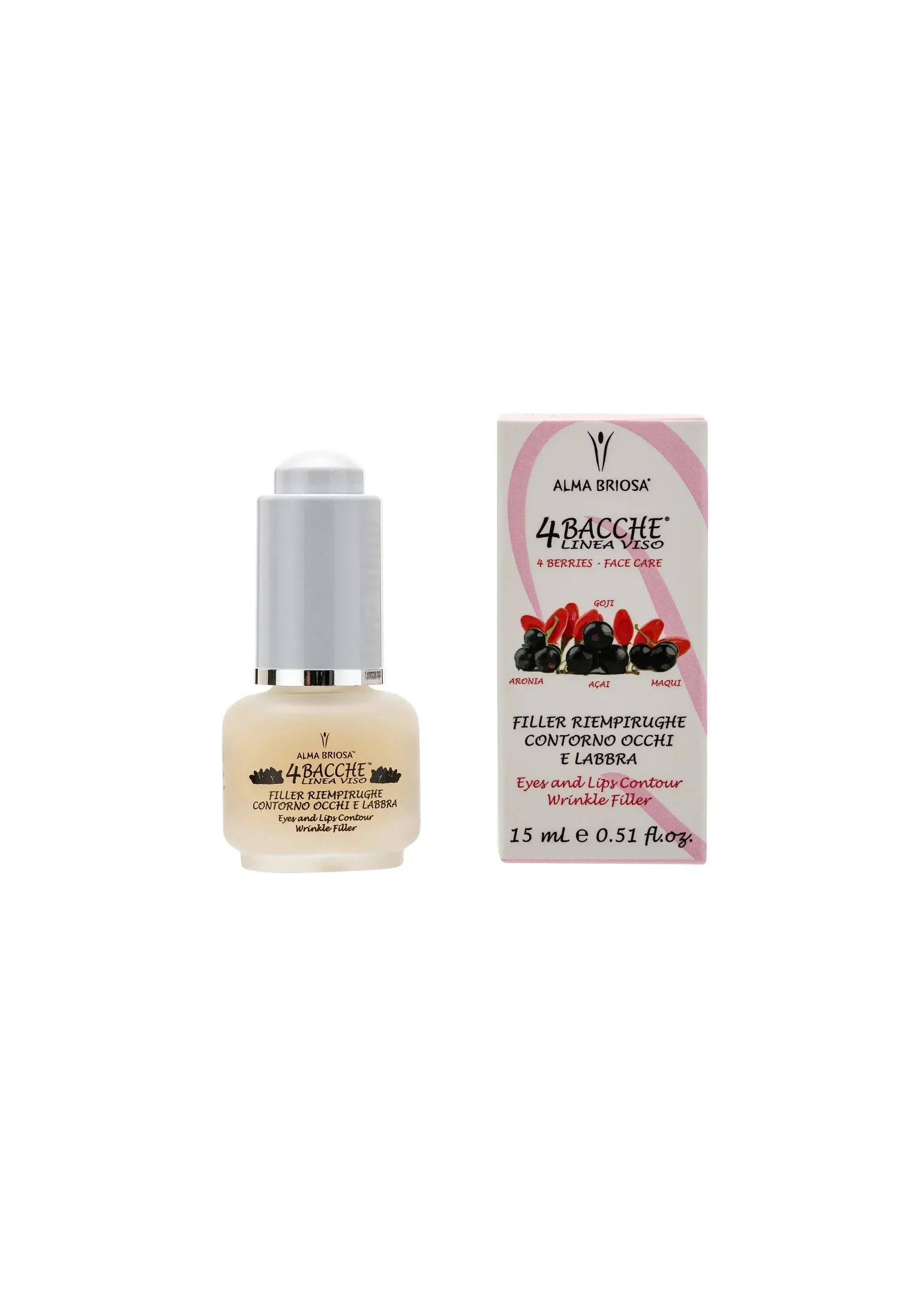 Per contrastare la stanchezza del viso e per ridare tono e luminosità allo sguardo, utilizzare Filler Riempirughe 4Bacche sul contorno occhi e sulle rughe più profonde del viso. Applicare una goccia di siero per volta, massaggiando delicatamente con movimenti circolari fino a completo assorbimento. In seguito all’applicazione del prodotto si manifesta un piacevole effetto tensore che svanisce in pochi minuti, dopo il completo assorbimento degli ingredienti attivi.