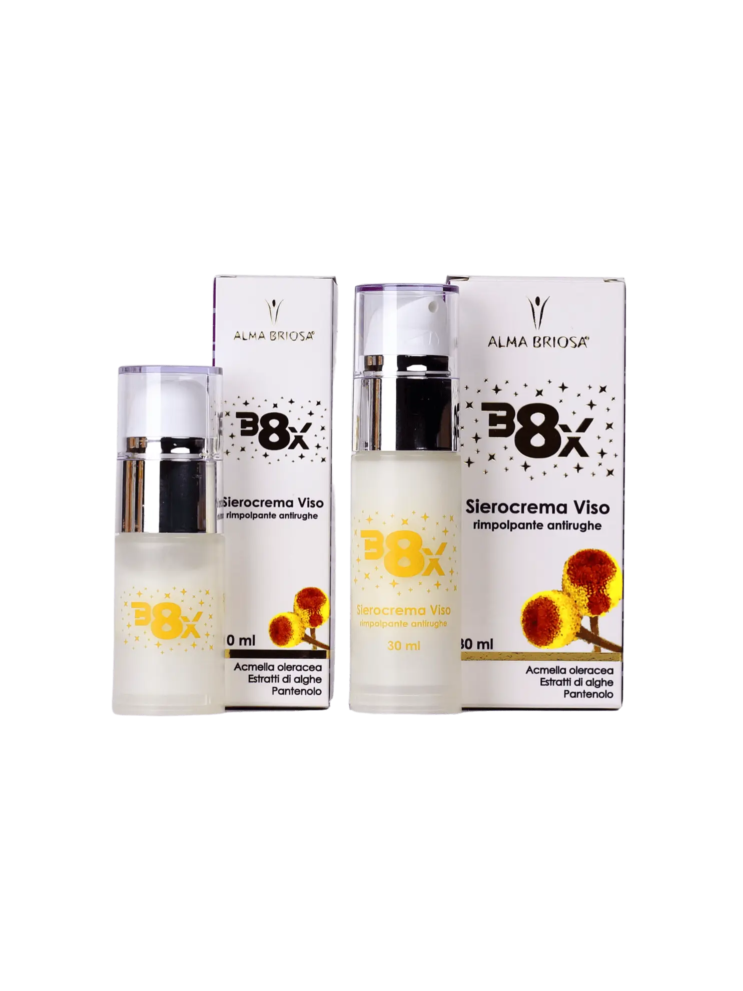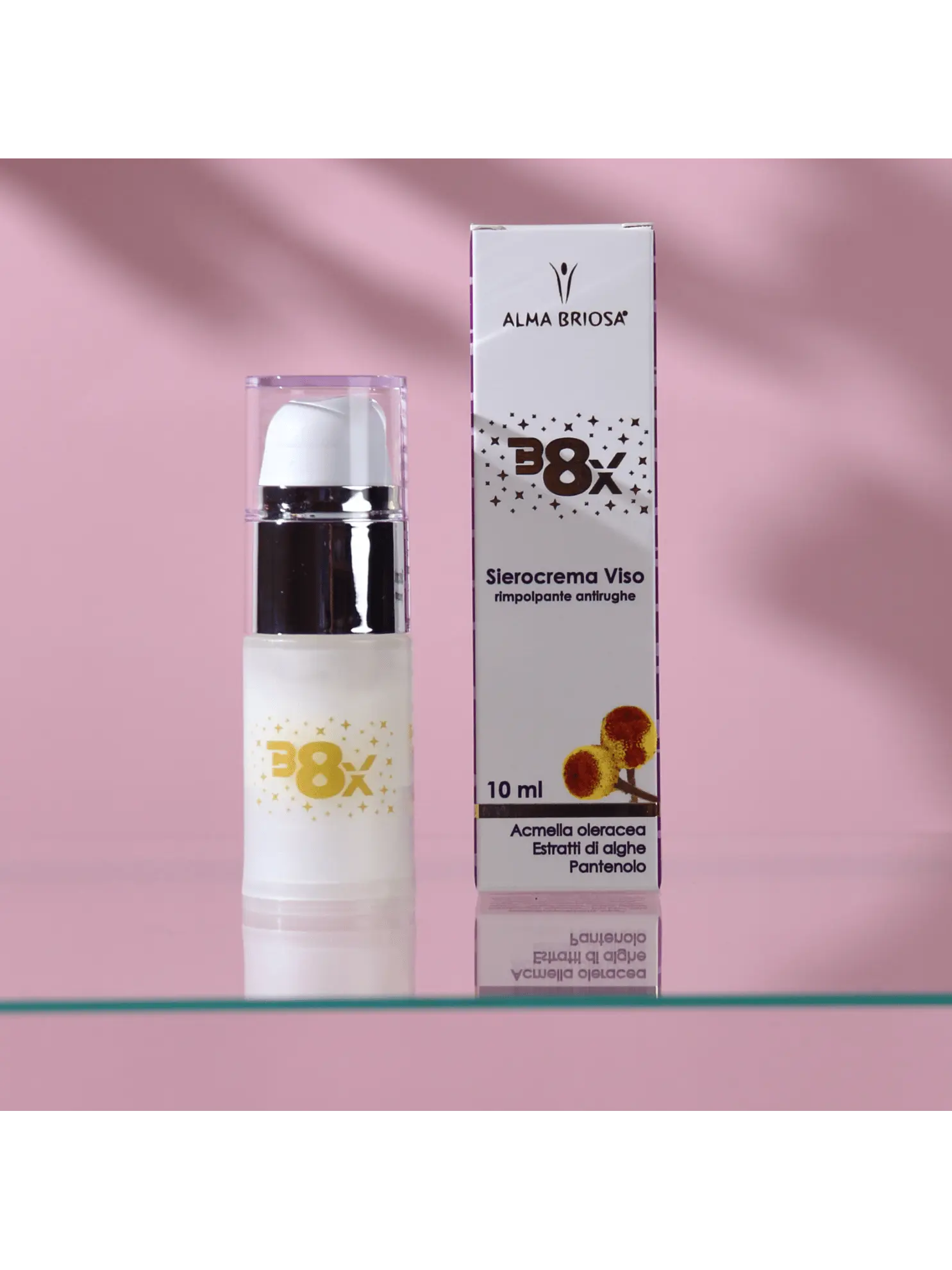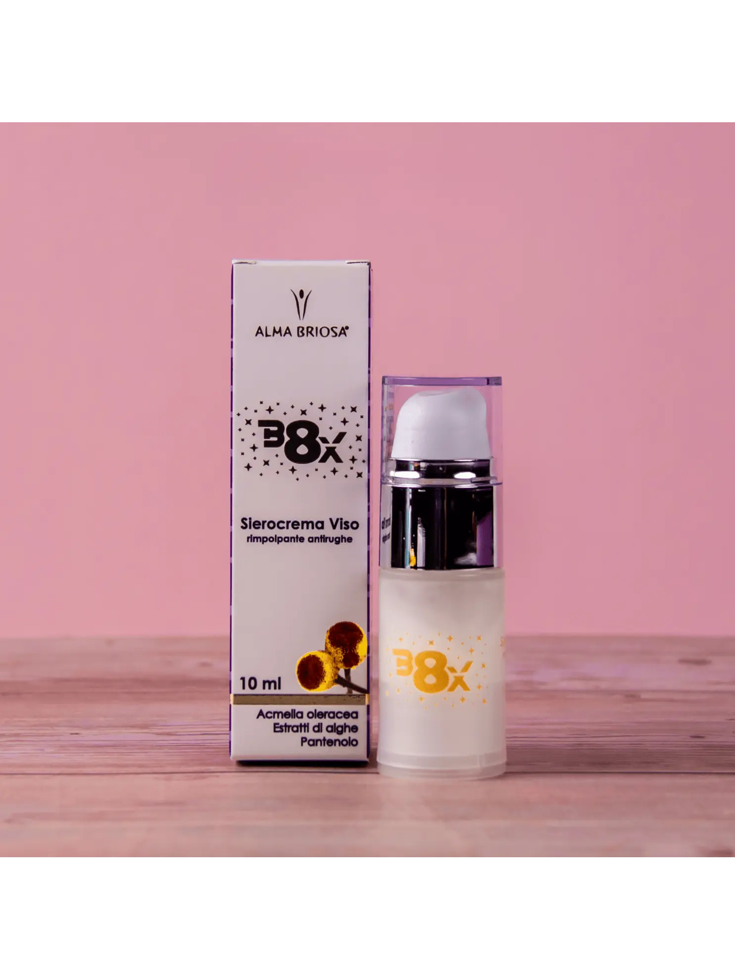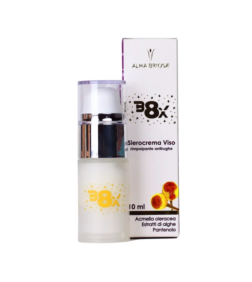B8X è il Sierocrema viso a base di Acmella Oleracea, pianta in grado di rimpolpare e distendere i segni dell’invecchiamento, oltre ad accelerare la riparazione delle rughe funzionali e rassodare il derma*.